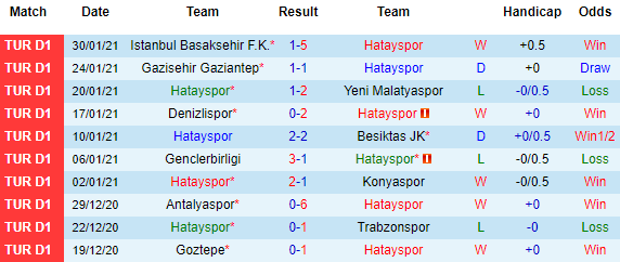 + Thống kê 10 trận gần nhất của Hatayspor