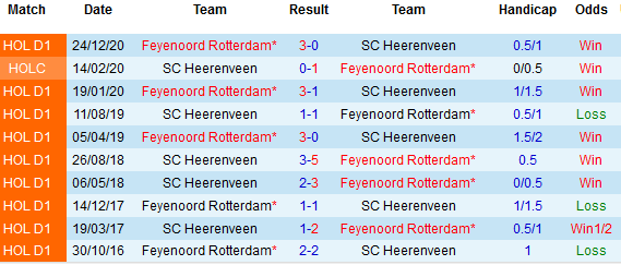 + Lịch sử đối đầu Heerenveen vs Feyenoord