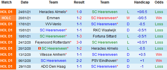 + Thống kê 10 trận gần nhất của Heerenveen