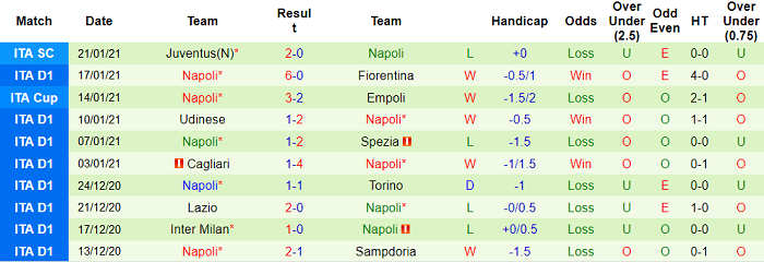 6 chiến thắng gần nhất của Napoli trước Hellas Verona đều có cách biệt không dưới 2 bàn. Napoli vì thế đủ khả năng vượt qua tỷ lệ chấp 3/4:0 theo mà các nhà cái châu Á đưa ra.