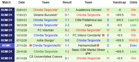+ Thống kê 10 trận gần nhất của Chindia Targoviste