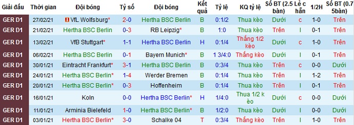 + Thống kê 10 trận gần nhất của Hertha Berlin