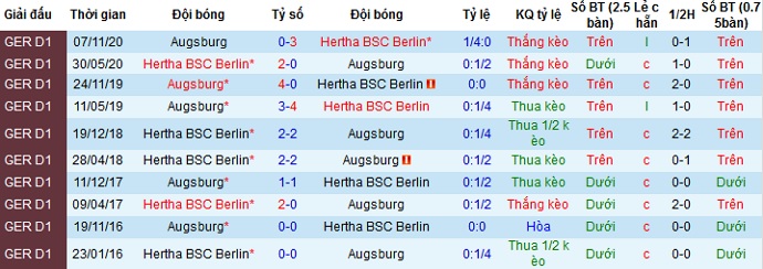 + Lịch sử đối đầu Hertha Berlin vs Augsburg