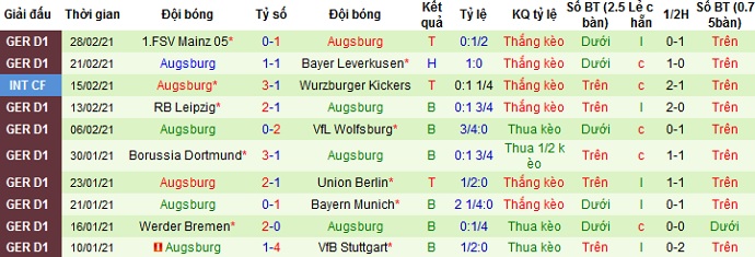 + Thống kê 10 trận gần nhất của Augsburg