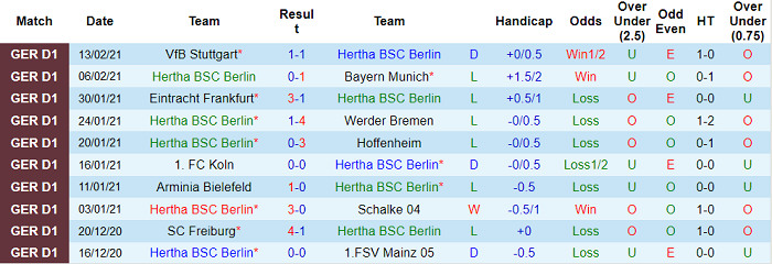 - Thống kê 10 trận gần nhất của Hertha Berlin