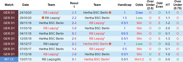 Tỷ lệ thắng kèo trên sân nhà của Hertha Berlin tại Bundesliga mùa này chỉ là 30.00%. Tỷ lệ này kém ấn tượng hơn đáng kể so với tỷ lệ thắng kèo trên sân khách của RB Leipzig tại Bundesliga mùa này: 50.00%. Leipzig vì thế vẫn trở thành sự lựa chọn đáng tin cậy hơn cho giới đầu tư.