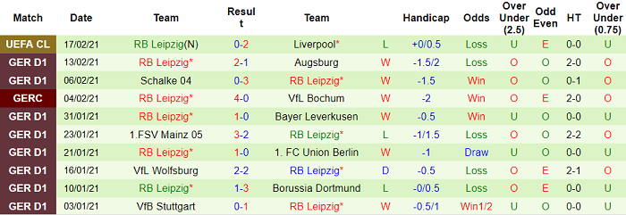 - Thống kê 10 trận gần nhất của RB Leipzig