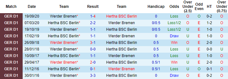 Phong độ và thống kê đối đầu Hertha Berlin vs Werder Bremen