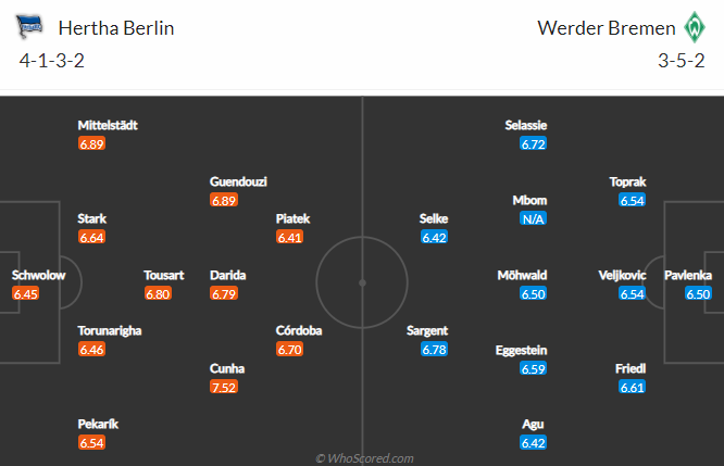 Đội hình dự kiến Hertha Berlin vs Werder Bremen
