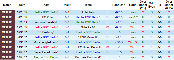 + Thống kê 10 trận gần nhất của Hertha Berlin