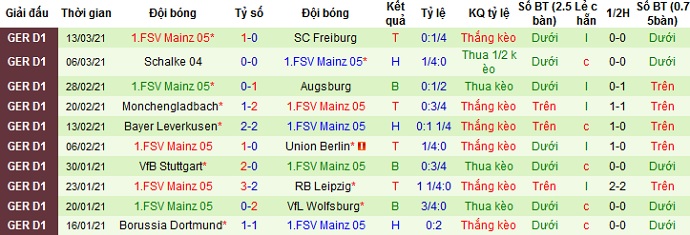 + Thống kê 10 trận gần nhất của Mainz 05