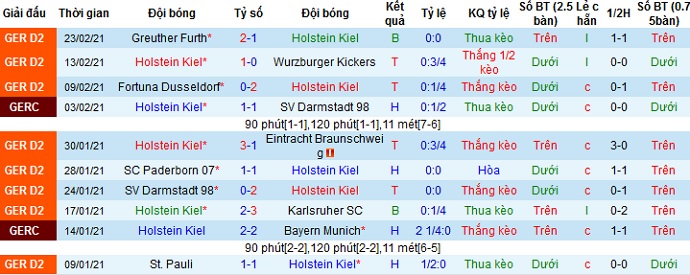 + Thống kê 10 trận gần nhất của Holstein Kiel