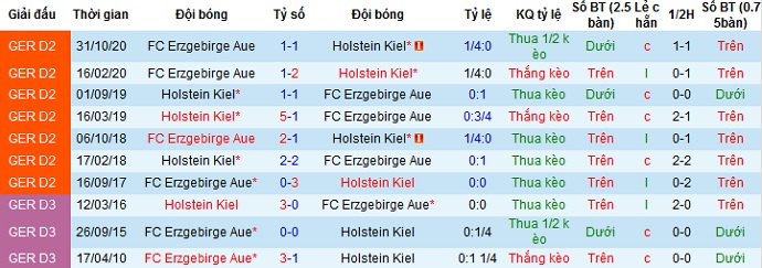 + Lịch sử đối đầu Holstein Kiel vs Erzgebirge Aue