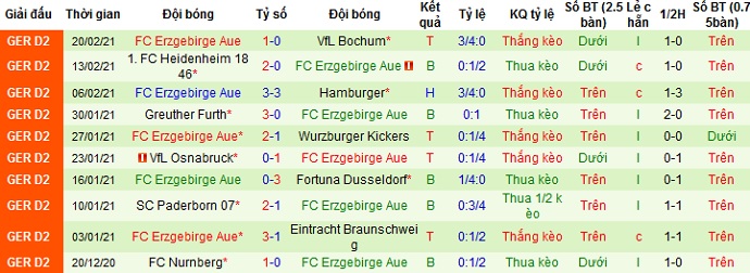 + Thống kê 10 trận gần nhất của Erzgebirge Aue