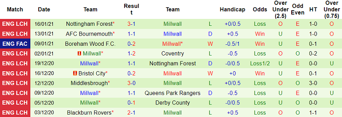 - Thống kê 10 trận gần nhất của Millwall