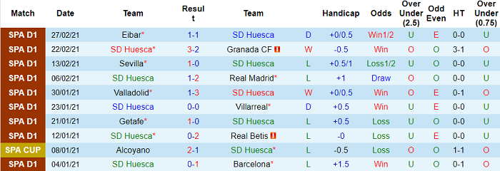 Những tín hiệu tích cực đã đến với Huesca trong thời gian gần đây. Họ bất bại 4/6 trận gần nhất thuộc khuôn khổ La Liga và thu về 8 điểm. Thành tích này tốt hơn hẳn so với việc toàn thua cả 4 màn so tài trước đó.