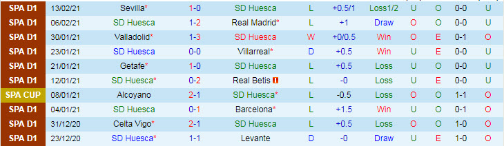 Niềm tin trụ hạng của Huesca được nhe nhóm lại khi họ giành thắng lợi trước Valladolid ở trận đấu cuối cùng tháng 1. Tuy nhiên, niềm vui của Huesca chẳng được kéo dài khi họ lần lượt để thua Sevilla và Real Madrid ở 2 lượt trận đã đá trong tháng này.