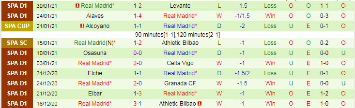 + Thống kê 10 trận gần nhất của Real Madrid