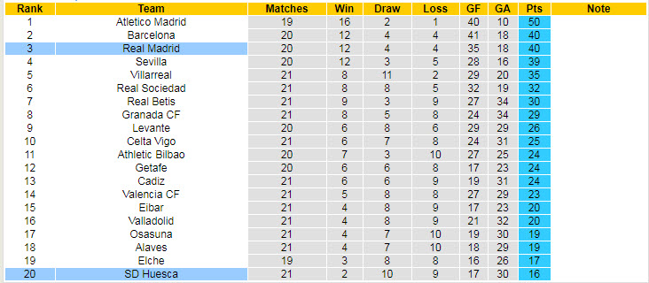 Hiểu rõ vấn đề, Los Blancos sẽ phải nỗ lực, hạn chế để rơi điểm ở những trận đấu còn lại của mùa giải. Trước mắt, Ramos cùng đồng đội sẽ là nhiệm vụ giành trọn 3 điểm ở trận đối đầu trước Huesca tại vòng 22 diễn ra đêm nay.