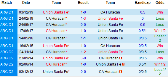 + Lịch sử đối đầu Huracan vs Union Santa Fe