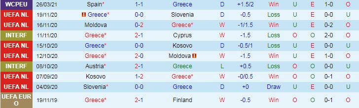 + Thống kê 10 trận gần nhất của Hy Lạp