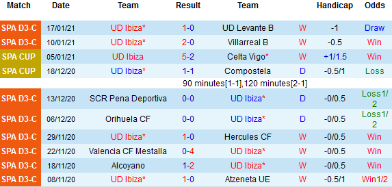 + Thống kê 10 trận gần nhất của Ibiza