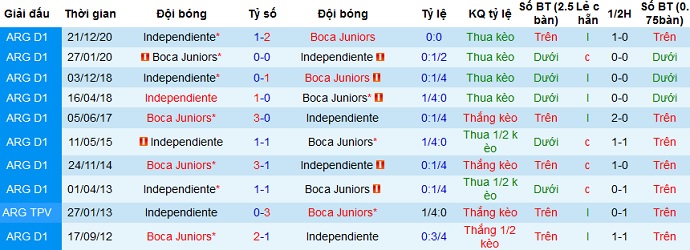 + Soi tỷ lệ kèo châu Á: Đứng trên đối thủ và được thi đấu trên sân nhà nhưng Independiente vẫn đang bị đánh giá là đội cửa dưới với kèo chấp hiện là +0,25. Lý do là bởi ở 2 lần đối đầu gần nhất khi được thi đấu trên sân nhà Independiente đều để thua trước Boca Juniors.