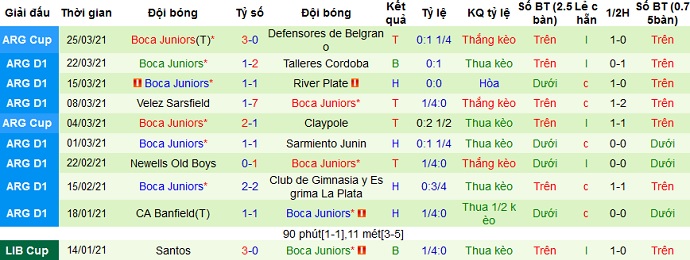 + Thống kê 10 trận gần nhất của Boca Juniors