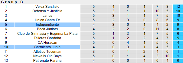 Nếu như Independiente nỗ lực để có suất dự tứ kết (4 đội đứng đầu 2 bảng sẽ vào tứ kết), thì Sarmiento khó lòng vươn lên nhóm này. Sau 4 trận, Independiente có 3 chiến thắng và rộng cửa tranh top 4 ở bảng B. Còn với Sarmiento, việc chưa giành nổi trận thắng nào là minh chứng rõ ràng cho sự yếu kém của họ.