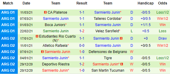 + Thống kê 10 trận gần nhất của Sarmiento