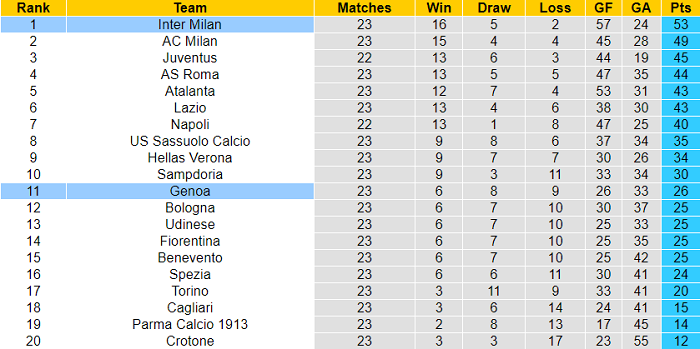 Vì những lẽ đó, sẽ không bất ngờ nếu Inter Milan khiến Genoa ‘ôm hận’ vào Chủ nhật (28/2).