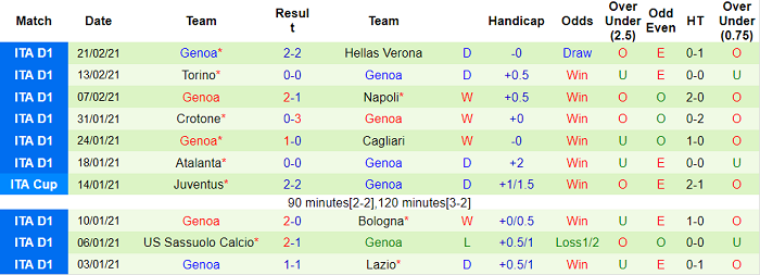 - Thống kê 10 trận gần nhất của Genoa