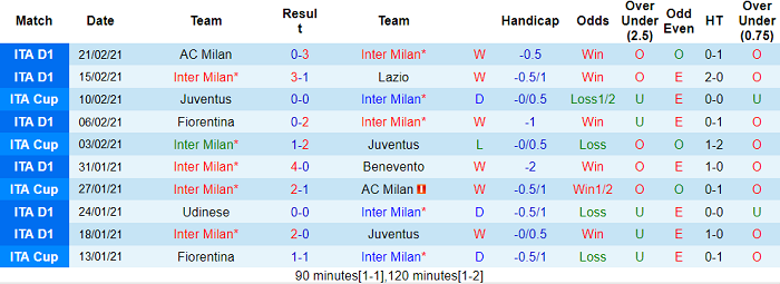 - Thống kê 10 trận gần nhất của Inter Milan
