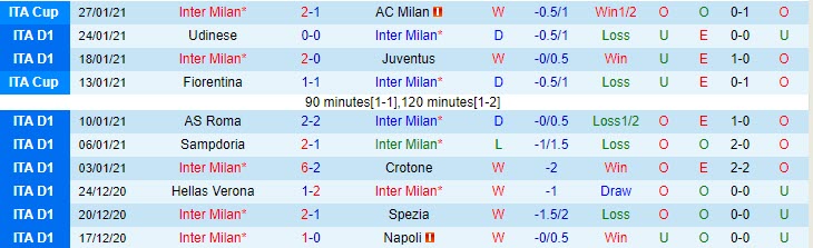 Inter Milan đang hướng tới cú đúp ở mùa giải 2020/21 khi đang thi đấu tốt tại cúp QG Italia và giải đấu VĐQG. Tại mặt trận cúp, Inter vừa có chiến thắng 2-1 trước đại kình địch AC Milan tại vòng tứ kết. Còn tại đấu trường số 1 giải VĐQG Italia, đội bóng thành Conte đang đứng ở vị trí thứ 2 và chỉ kém đội đầu bảng AC Milan khoảng cách 2 điểm.