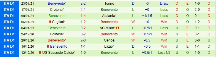 Trái ngược với tâm thế tự tin của đối thủ, Benevento khiến nhiều người yêu mến bất an khi sở hữu phong độ chồi sụt. Cụ thể, họ chỉ thắng 1 trận, hòa 1 và thua 3 trong số 5 trận gần nhất tại giải VĐQG Italia. Một điểm cần lưu ý, Benevento vừa để thua cả 4 trận đối đấu trước Inter và không dễ để họ có điểm ở trận đấu đêm nay.