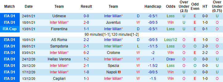 + Thống kê 10 trận gần nhất của Inter