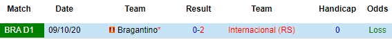 Chạm trán với Bragantino trên sân nhà, lẽ dĩ nhiên NHM Internacional chờ đợi vào 3 điểm. Internacional đang thi đấu cực kỳ ấn tượng với mạch 9 chiến thắng liên tiếp ở cả giải VĐQG lẫn Copa Libertadores. Đối thủ mà Internacional đụng độ ngày hôm nay, Bragantino đang đứng thứ 11 trên BXH.