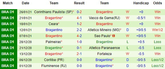 Bragantino nằm trong khu vực được dự Copa Sudamericana và họ muốn giữ vững vị thế này. Màn trình diễn của Bragantino thời gian qua cũng rất ấn tượng. Họ cũng bất bại 5 trận mới đây với 4 chiến thắng và 1 kết quả hòa.