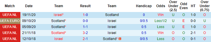 Những thông tin kể trên cho thấy sự vượt trội của Scotland so với đối thủ. Thế nhưng trước giờ bóng lăn, Israel vẫn được tin tưởng vào khả năng giành chiến thắng. 2 lần tiếp đón Scotland trước đó trên sân nhà vào năm 2020 và 2018, Israel toàn thắng. 12 trận tiếp khách trước đó tính trên mọi đấu trường, Israel bất bại 9 lần (thắng 6, hòa 3). Scotland thua 4, hòa 1 trong vòng 7 trận sân khách vừa qua.
