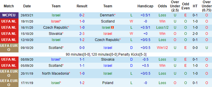 Israel gây thất vọng ở trận ra quân tại vòng loại World Cup 2022 khi để thua tâm phục khẩu phục 0-2 trên sân nhà trước Đan Mạch. Trong khi đó Scotland đã xuất sắc giành 1 điểm trước đối thủ chiếu trên Áo ở trận mở màn hôm 26/3 vừa qua. Trên bảng xếp hạng FIFA, Israel đang xếp ở vị trí thứ 87, trong khi Scotland xếp hạng 48.