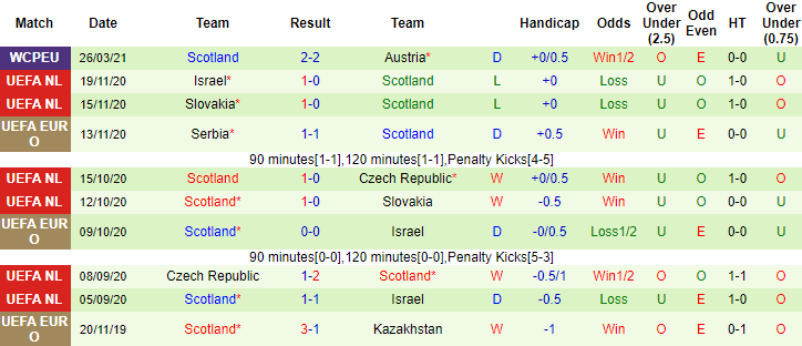 + Thống kê 10 trận gần nhất của Scotland