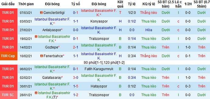 + Thống kê 10 trận gần nhất của Istanbul Basaksehir
