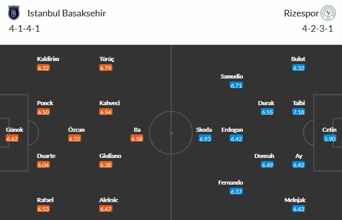 Đội hình dự kiến Istanbul Basaksehir vs Rizespor