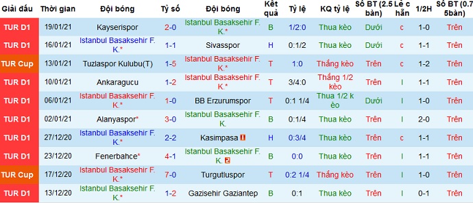 + Thống kê 10 trận gần nhất của Istanbul Basaksehir