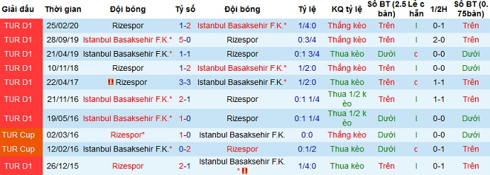 + Lịch sử đối đầu Istanbul Basaksehir vs Rizespor