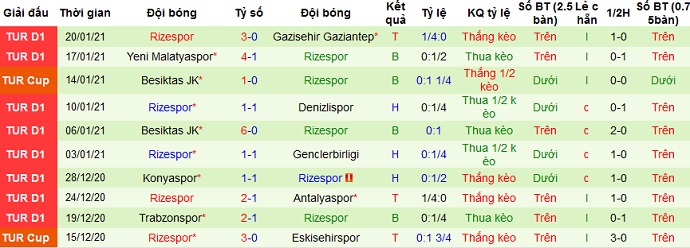 Sau 1 trận hòa và 3 trận thua liên tiếp, mới đây Rizespor cũng đã có được chiến thắng 3-0 trước Gaziantep FK. Thế nhưng thành tích sân khách của Rizespor vẫn đang rất tệ khi ở 6 lần du đấu gần nhất đội bóng chỉ có nổi 1 trận hòa, để thua trong cả 5 trận còn lại.