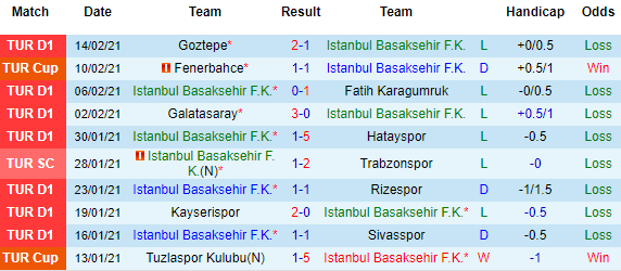 + Thống kê 10 trận gần nhất của Istanbul Basaksehir