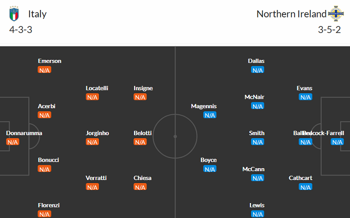 2 lần tiếp đón Bắc Ireland trong quá khứ, Italia đều ghi được 3 bàn và không phải nhận bàn thua. Lịch sử nhiều khả năng sẽ lặp lại vào rạng sáng thứ Sáu (26/3) theo giờ Việt Nam.