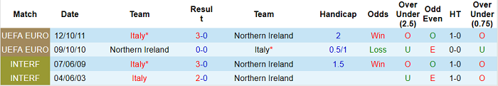 - Lịch sử đối đầu Italia vs Bắc Ireland