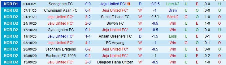Phong độ và thống kê đối đầu Jeju United - Jeonbuk Hyundai gần đây: